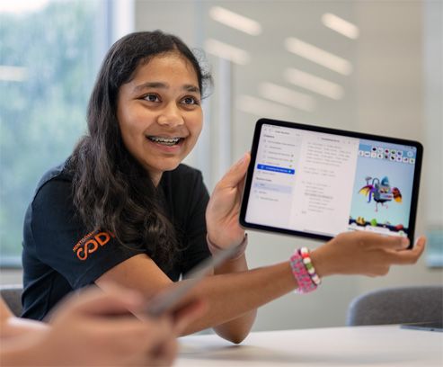 Elementary students learn how to start a basic business using applications like Numbers to compare costs and set prices. And they learn how to brand and market those businesses using Keynote to design logos and Pages to write and develop plans. As students progress through middle school, they build and program robots in LEGO’s EV3 Classroom,* and when they reach the upper grades some students even code their own iOS apps in Swift Playgrounds, which enables them to address issues they care about and prepare for their future careers.