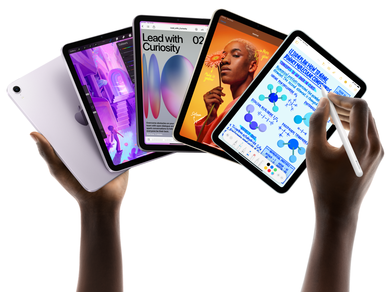 The blazing-fast A17 Pro chip makes iPad mini a portable powerhouse. It enables Apple Intelligence and delivers a big boost in performance. The 16‑core neural engine is up to 2x faster than the previous generation. The 5‑core GPU brings advanced features like hardware‑accelerated ray tracing for graphically intense AAA-level games. And you can work, play and create from anywhere with all‑day battery life.3