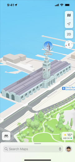 Explore San Francisco, Los Angeles, New York and London — and more cities coming soon — with unprecedented detail for elevation, neighbourhoods, buildings, trees, and road features like pedestrian crossings and turning lanes. Visit amazing 3D landmarks like the Golden Gate Bridge in both the day- and dark-mode maps.
