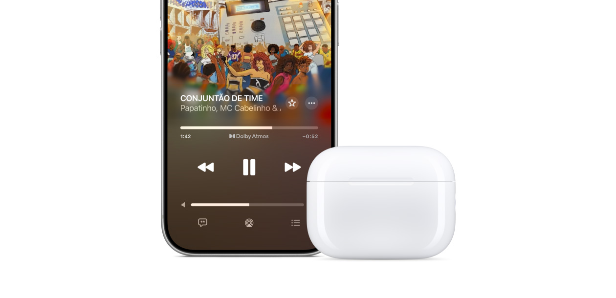 Os AirPods Pro 3 têm Equalização Adaptativa de última geração, que customiza o som de acordo com a anatomia e o encaixe nos seus ouvidos. E o Volume Personalizado usa aprendizado de máquina para entender seus padrões de áudio e se adaptar às suas preferências ao longo do tempo19.