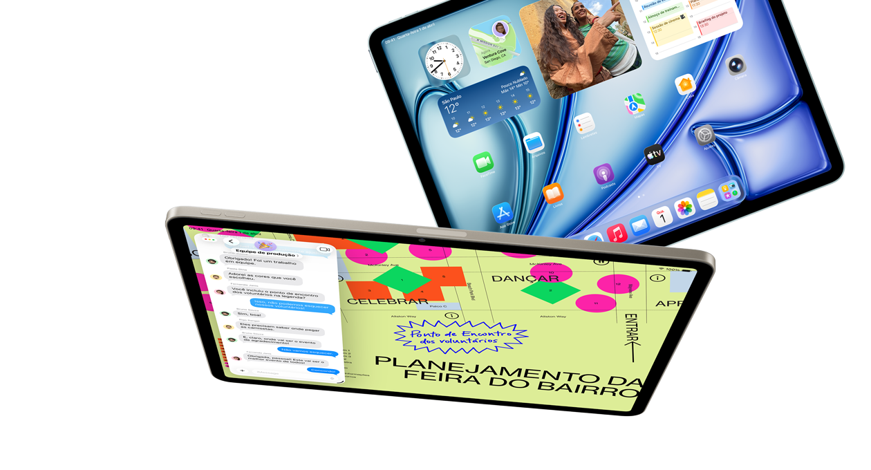 O iPad Air foi projetado para a Apple Intelligence, o sistema de inteligência pessoal que ajuda você a criar, se comunicar e fazer de tudo sem esforço. Com proteções de privacidade revolucionárias, você tem a segurança de que ninguém vai acessar seus dados, nem mesmo a Apple.