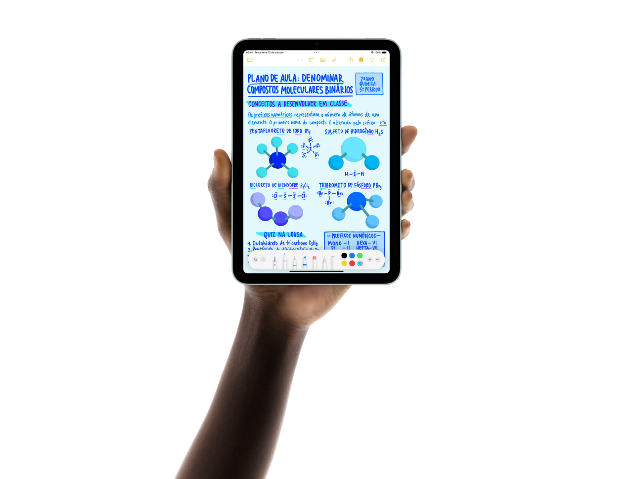 A tela Liquid Retina de 8,3 polegadas tem True Tone, ampla tonalidade de cores P3 e refletividade ultrabaixa, que deixa os textos nítidos e as cores vibrantes em todos os ambientes1.