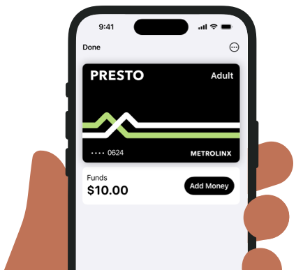 • A PRESTO card can only be on one device at a time, but you can easily move it between your devices.