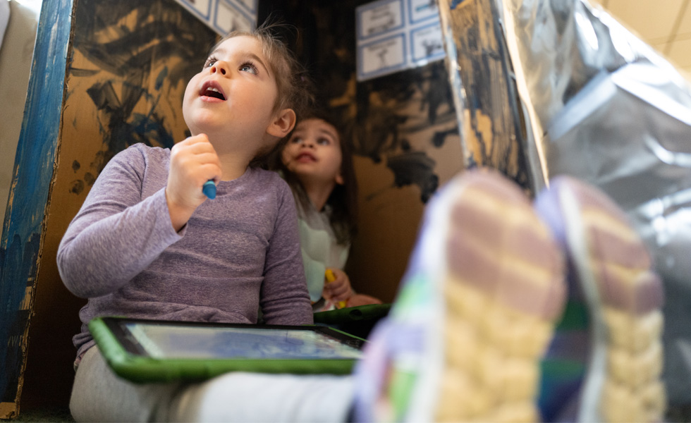 “Using iPad, students can share with the whole group — they take responsibility for their learning,” says Kristin Malone, a STEAM program teacher at Stowe. “I think a lot of people don’t understand how capable preschool children are. When you talk to them like they are adults and treat them with the respect they deserve, it’s amazing what they can do.”