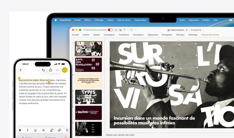 Gagnez en productivité et en créativité avec des outils intelligents qui vous facilitent la tâche, de la retouche d’images dans Adobe Photoshop au rendu de modèles 3D dans Shapr3D, en passant par la réalisation de films dans Final Cut Pro.