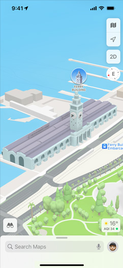 Explore San Francisco, Los Angeles, New York City and London — and more cities coming soon — with unprecedented detail for elevation, neighbourhoods, buildings, trees, and road features like crosswalks and turn lanes. Visit amazing 3D landmarks like the Golden Gate Bridge in both the day and dark mode maps.