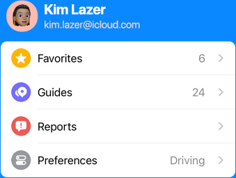 Open Maps and tap your user account photo at the bottom of the screen to see your most used settings — like preferred mode of transit, reported issues and favourites — all in one place. And when you open Maps on your devices or on your dashboard with CarPlay, it displays the places you visit most — so you’re always just a tap away from home, work, the gym, your kid’s school, the nearest gas station or your favourite restaurant.