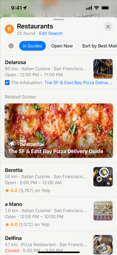 Guides help you find amazing things to see and do in cities around the world.4 Just tap the Explore Guides button to access nearly 1000 expertly curated Guides, and find and save the ones that catch your eye. Curated Guides automatically update when new places are added, so you always have the latest recommendations at your fingertips. You can also create your own Guides and share them with friends and family.