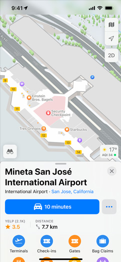 Choose a destination, and its interactive place card shows you everything you need at a glance. See basics like address, hours, website and phone number, along with details like price range, photo galleries, associated Guides, accepted payment types — even whether you can bring your dog. Launch Flyover or Look Around to get a sense of the location and surroundings. You can even quickly and securely rent a bike, pay for parking, order food and more with just a tap. And for places that use Business Chat, you can reach out and ask questions directly in Messages.