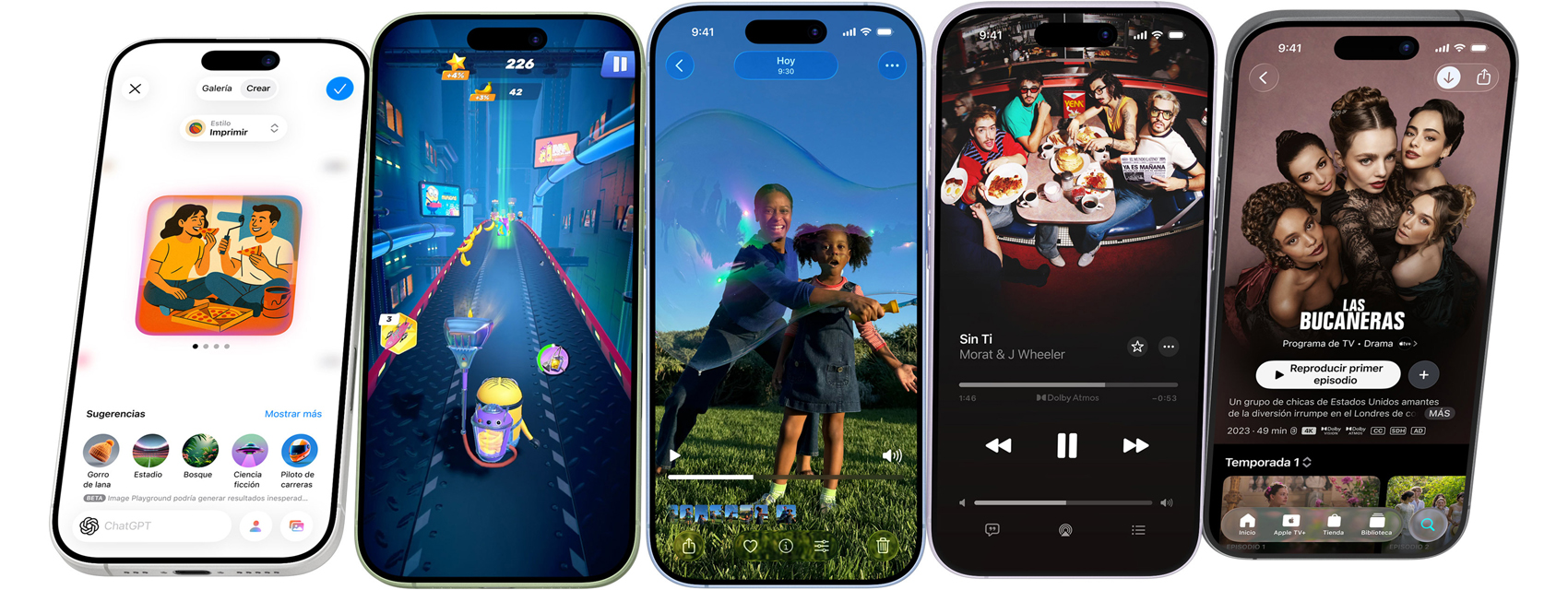 Los últimos modelos de iPhone vienen con miles de razones para enamorarte. Las prácticas funcionalidades de Apple Intelligence, como Inteligencia Visual y Herramientas de Escritura, te facilitan las tareas del día a día.11 Y con Wi‑Fi 712, Bluetooth 6, 5G13 y eSIM14, las conexiones son rápidas y seguras.