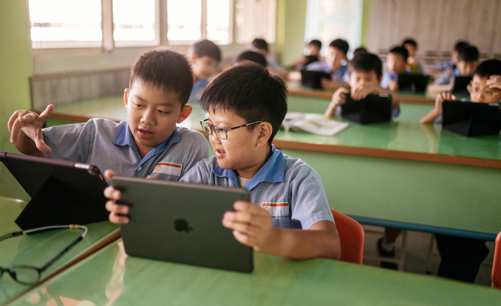 Just outside Taipei’s business district is Zhiqing Municipal Elementary, a public school that serves over 700 students from kindergarten to sixth grade. The school is led by Principal Juiting Chang, who believes technology enhances students’ critical thinking skills and creativity — and that learning with iPad can help them compete on a global stage.