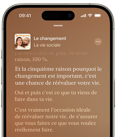 Écoutez vos podcasts préférés tout en suivant leur transcription ou lisez le texte seul. Retrouvez facilement les passages qui vous ont plu ou touchez un paragraphe pour écouter ce moment particulier de l’épisode3.