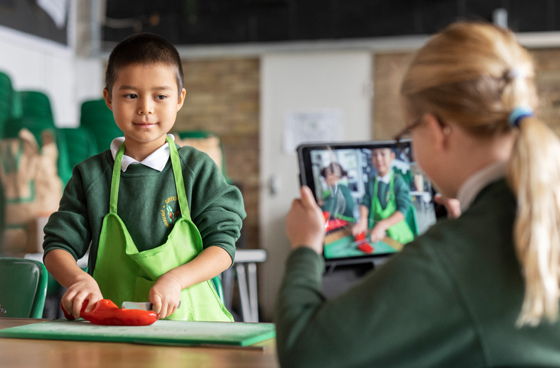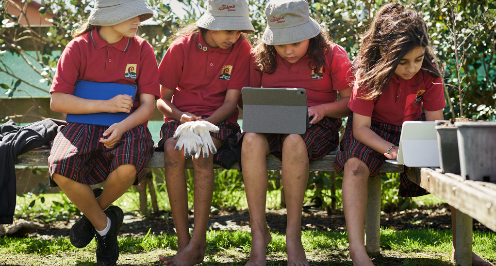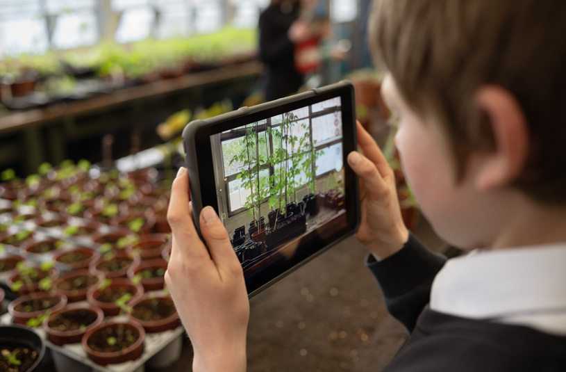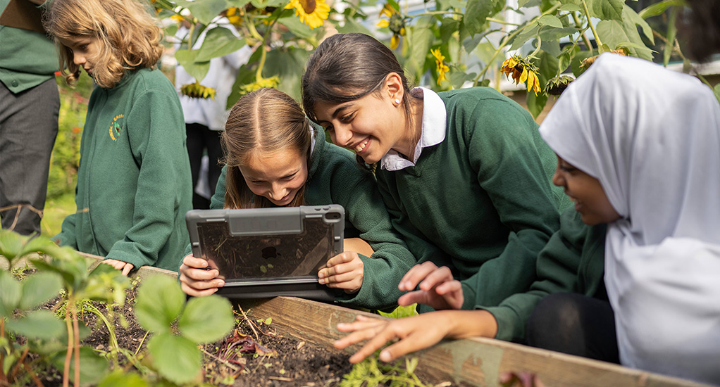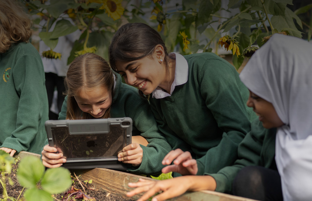 Az iPad megmutatja, hogyan kerül az iskolai kiskertből az asztalra az étel.