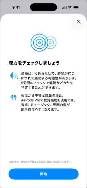 ヒアリングチェック1ヒアリング補助機能2大きな音の低減機能を利用できます。必要なのは、AirPods Pro 3またはAirPods Pro 2と、iPhoneまたはiPadだけ。聴覚の健康をサポートする世界初のエンドツーエンド体験をどうぞ。