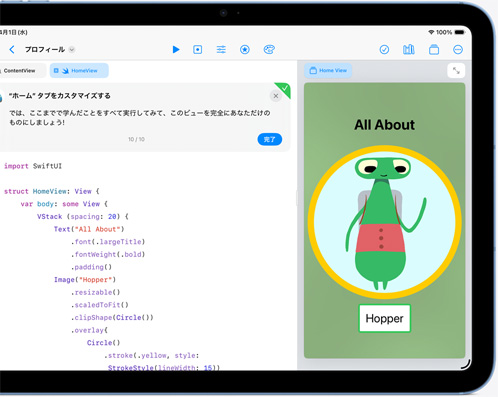 Swift Playgroundは、インタラクティブなパズルやコードの詳しい解説で、生徒たちをプログラミングやアプリデザインの世界へと導きます。