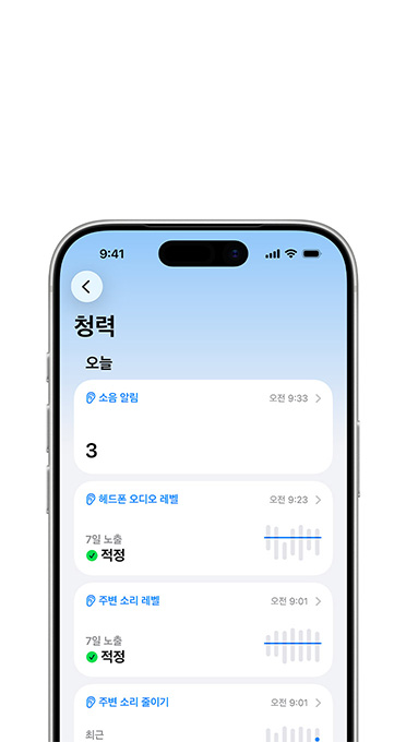 청력 테스트, 보청기 기능 및 큰 소리 줄이기 사용 불가