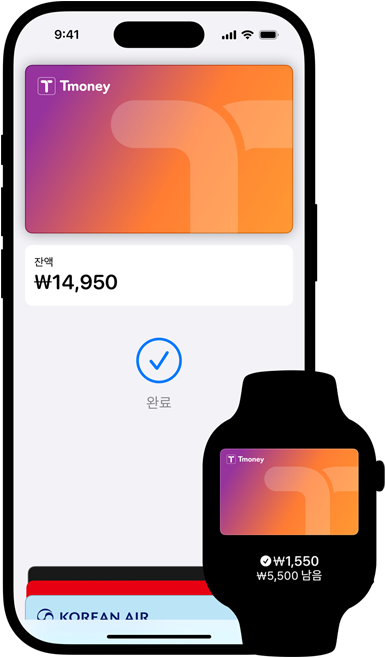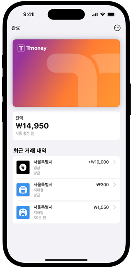 • Apple Pay 이외의 방법으로 티머니 카드를 충전하려면 iOS용 모바일티머니 앱을 App Store에서 다운로드하세요.