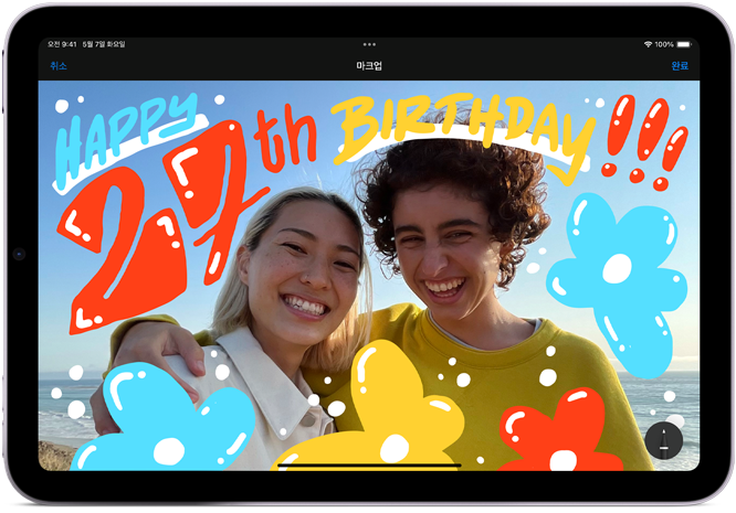 Apple Pencil은 그리고, 메모하고, 문서에 마크업을 다는 행위는 이 정도로 직관적이고 정밀하면서도 사뭇 마법처럼 느껴져야만 한다는 하나의 기준을 제시합니다. 픽셀 단위의 정밀함에 극히 짧은 지연 시간, 기울기 감지 기능, 팜리젝션 기능은 물론, 번뜩 영감이 떠오른 순간 바로 집어 쓸 수 있는 편리한 사용성까지 갖췄죠.