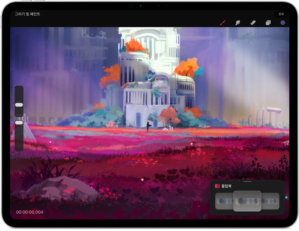 Apple Pencil을 기울여 섬세한 음영을 비롯한 다양한 효과 표현.