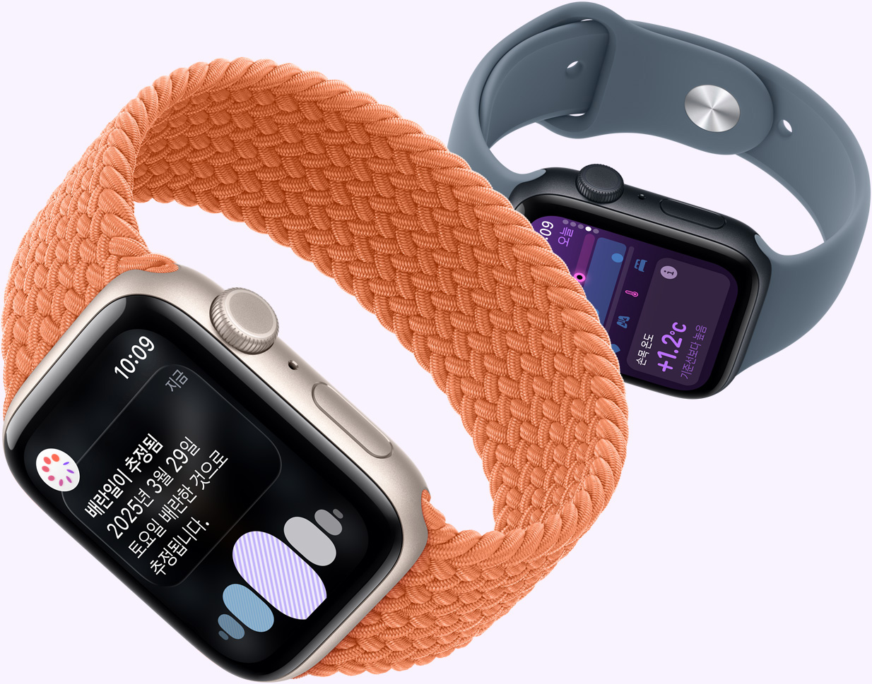 Apple Watch에는 당신이 잠을 자는 동안 심박수 및 손목 온도의 변화를 분석하는 센서들이 탑재되어 있습니다.1 ‘생리 주기 추적’ 앱은 이 데이터를 활용해 사용자의 배란일을 후향적으로 추정해 주며, 이는 임신 계획을 세우는 데 도움이 될 수 있습니다.9