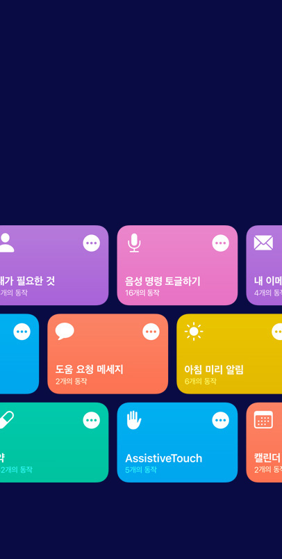 사용자 설정 자동화를 생성하거나, 당신이 즐겨 쓰는 앱에 내장된 수백 가지 동작 중에서 선택해 단축어를 만들어보세요. Siri 또는 간단한 탭으로 일상 속 일들을 간편하게 처리하는 데 도움을 줍니다.