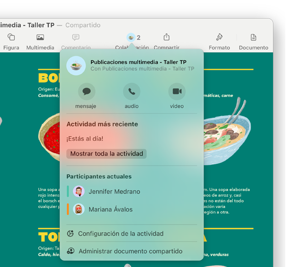 Colabora y comparte fácilmente archivos, carpetas, documentos y mucho más aunque estés de aquí para allá. Sólo tienes que enviar un enlace privado y configurar los ajustes si quieres que los demás vean, compartan o editen el contenido. Y gracias a las actualizaciones en vivo, podrás ver las modificaciones que se vayan haciendo en tiempo real.