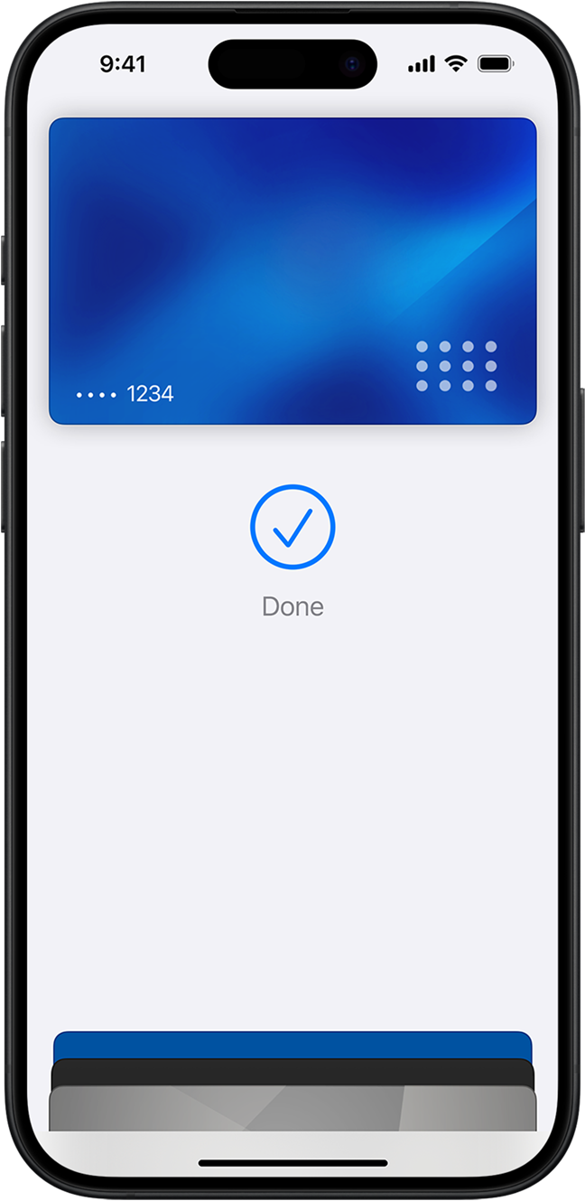 Set up in seconds. Right on your iPhone. Apple Pay is built into iPhone and Apple Watch. To get started on iPhone, open the Wallet app and tap the plus symbol. Then add a credit or debit card by tapping the back of your iPhone with your eligible card.1 You’ll have the option to add your card to your other devices at the same time. When you want to pay, just double-click, tap, and you’re set. You still get your card’s rewards and benefits — so you won’t miss out on any hard-earned points or miles.