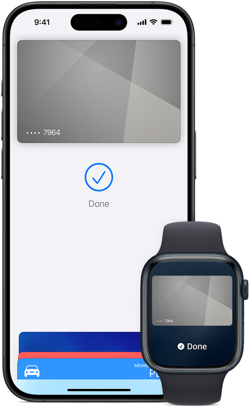 Tap more. Touch less. Apple Pay works right from your device, helping you avoid touching buttons and terminals, handling cards and exchanging cash. Every purchase requires Face ID, Touch ID or a passcode — helping to keep your security in your hands.
