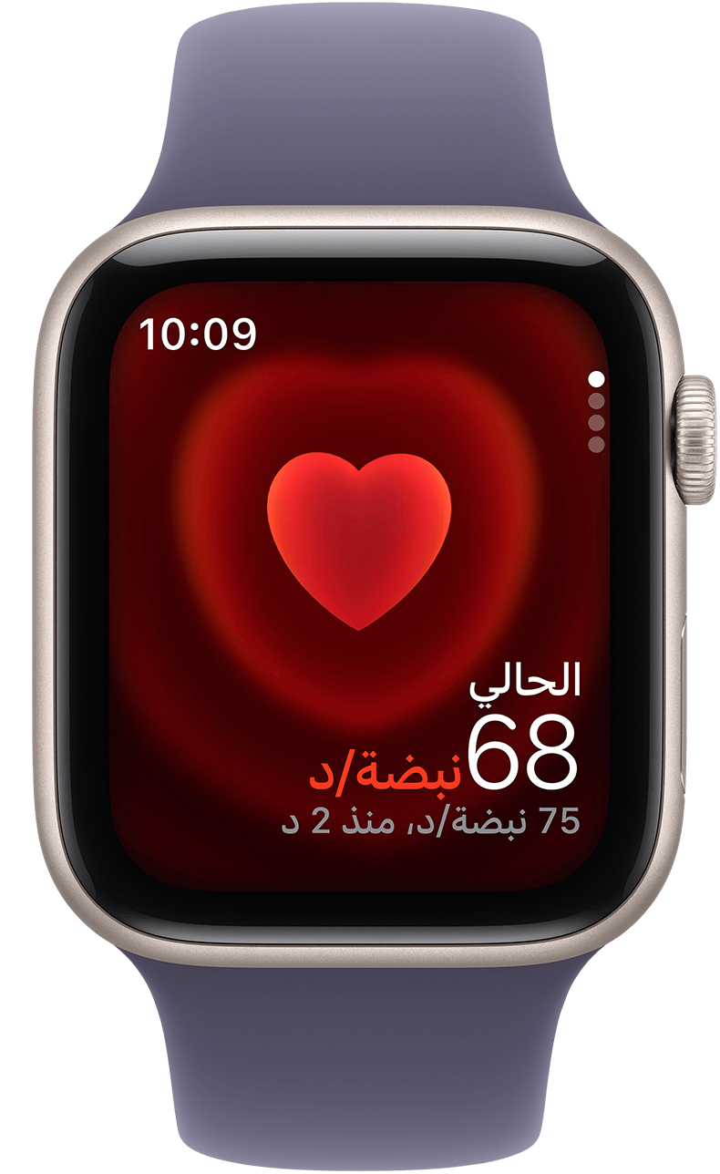 تحقّق من معدل نبض قلبك في أي وقت من خلال تطبيق نبض القلب، واحصل على إشعارات ارتفاع معدل نبض القلب أو انخفاضه أو اضطراب النَّظْم.10