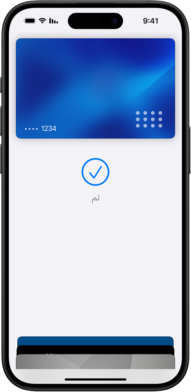 تعد Apple Pay أكثر أماناً من استخدام بطاقات الائتمان أو السحب أو بطاقات الدفع المسبق الفعلية. وهي تتطلب استخدام بصمة الوجه أو بصمة الإصبع أو رمز المرور الخاص بك لإتمام عمليات الشراء على iPhone أو Apple Watch أو Mac أو iPad. ولا تتم مشاركة رقم بطاقتك أو هويتك مع التجار، وكذلك لا تُحفظ أرقام بطاقتك الفعلية على جهازك أو على سيرفرات Apple.