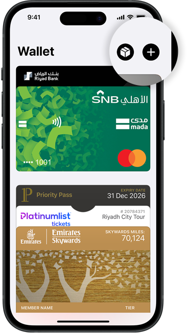 Paying for journeys on the bus or metro in Riyadh is easy with Express Mode for Apple Pay.1 There’s no need to authenticate with Face ID or even unlock your device. Just hold your iPhone or Apple Watch to the card reader and go.