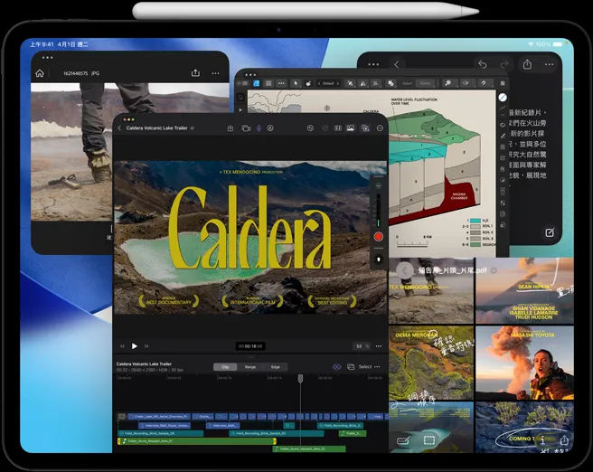 只要一部裝置,就能拍攝、剪輯和分享精彩作品。有了配備光學雷達掃描儀的 Pro 相機系統、錄音室等級麥克風和四個揚聲器,你可以拍攝 4K ProRes 影片、錄製 podcast,還能使用輸入選擇器,為每款 app 挑選合適的麥克風。