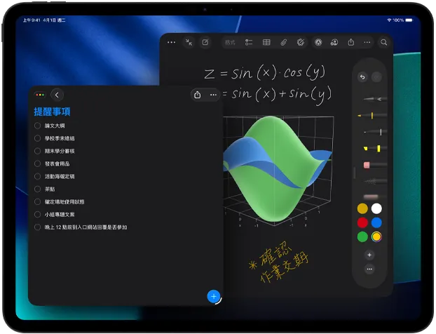 新境界的生產力。你可以一次打開更多視窗,隨意調整大小和重新排列,還能將螢幕分割成三等分或四等分。