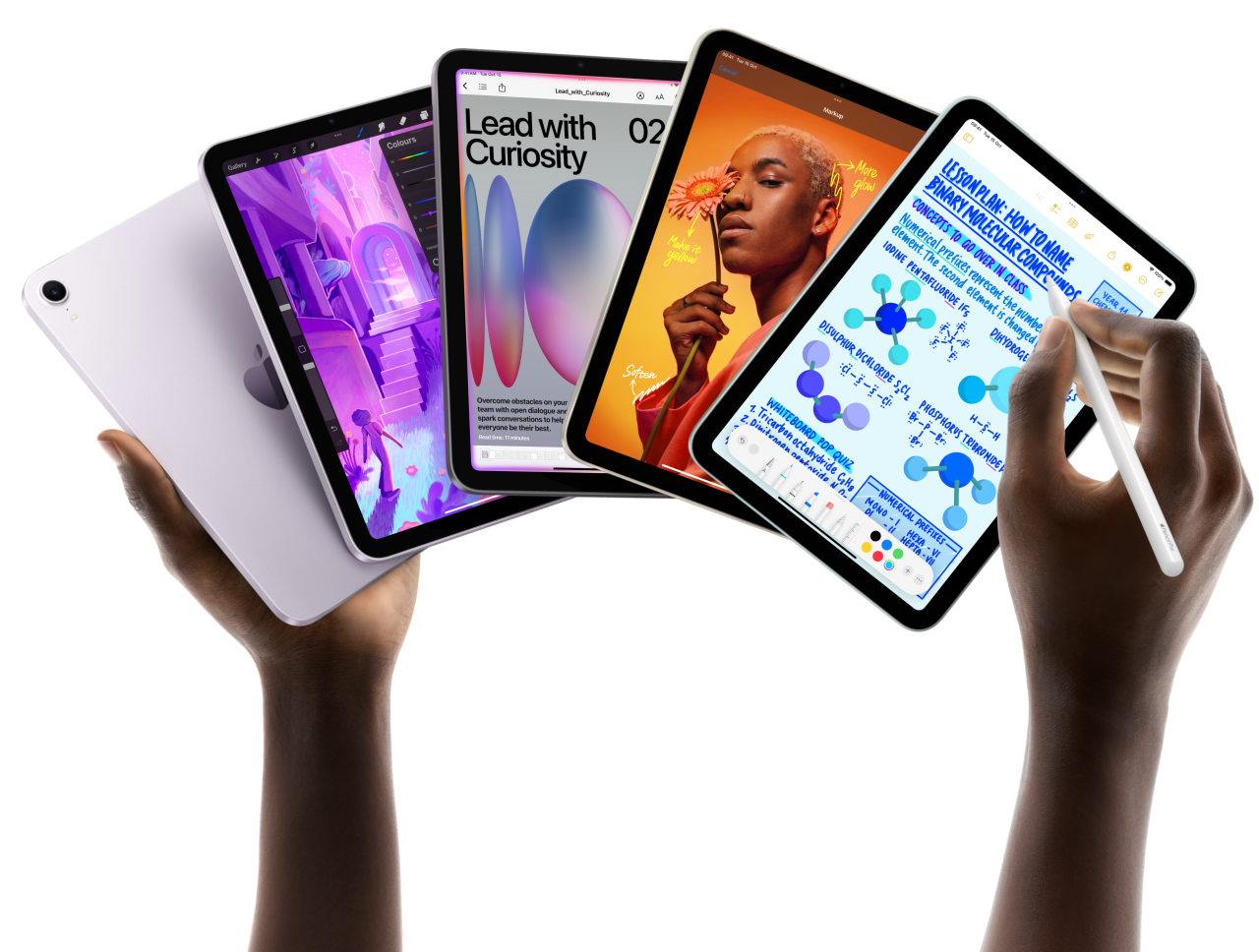 iPad mini has everything there is to love about iPad in a delightfully light, compact design. It features a 100 per cent recycled aluminium enclosure and stunning all‑screen design, and it goes anywhere you go — fitting perfectly into a backpack or handbag.