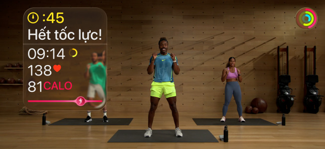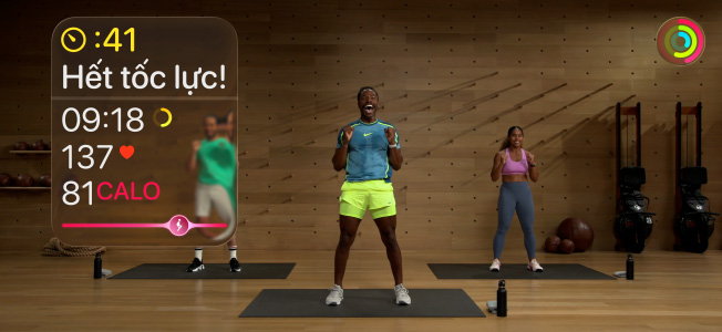 Một trải nghiệm siêu mạnh mẽ với Apple Watch. Nhận các chỉ số theo thời gian thực và xem tiến trình trực tiếp trong các vòng Hoạt Động để duy trì động lực khi bạn tập luyện.